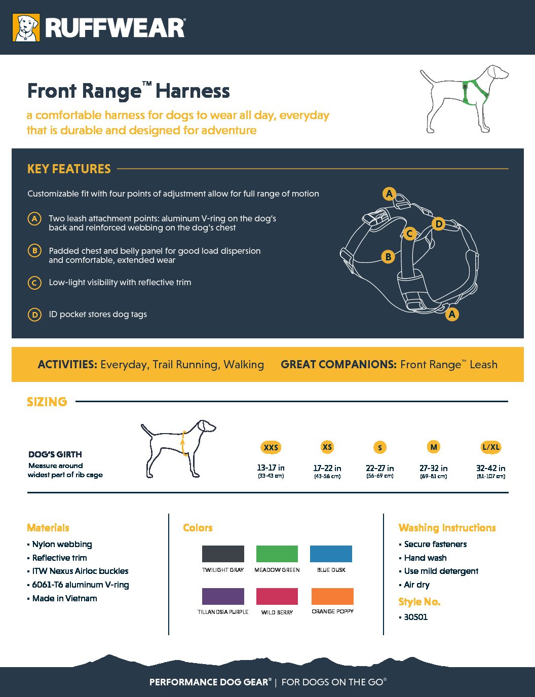 De Front Range tuigjes van Ruffwear zijn ideaal voor dagelijks gebruik.